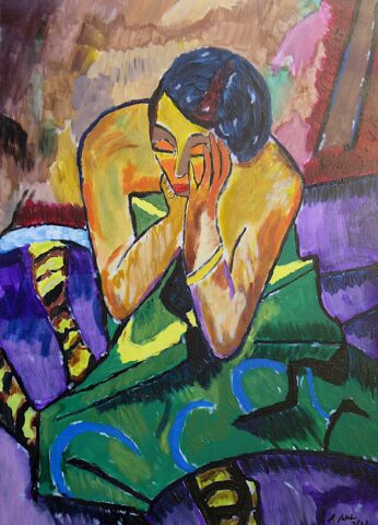 Nach „Sinnende Frau“ (1912) von Karl Schmidt-Rottluff. Acryl auf Leinwand, 50 x 70 cm. 06.09.2022 (c) Andreas Pecht