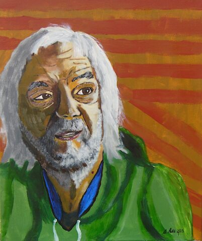 Titel: „Selbstporträt Nr. 2, Februar 2023 (im 68. Jahr)“. 50 x 60 cm, Acryl auf Leinwand. 23.02.2023 (c) Andreas Pecht