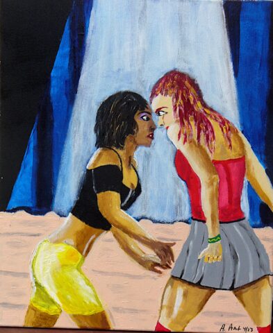 Titel „Dicke Luft“. Acryl auf Leinwand, 50 x 60 cm. 29.4.2023 (c) Andreas Pecht