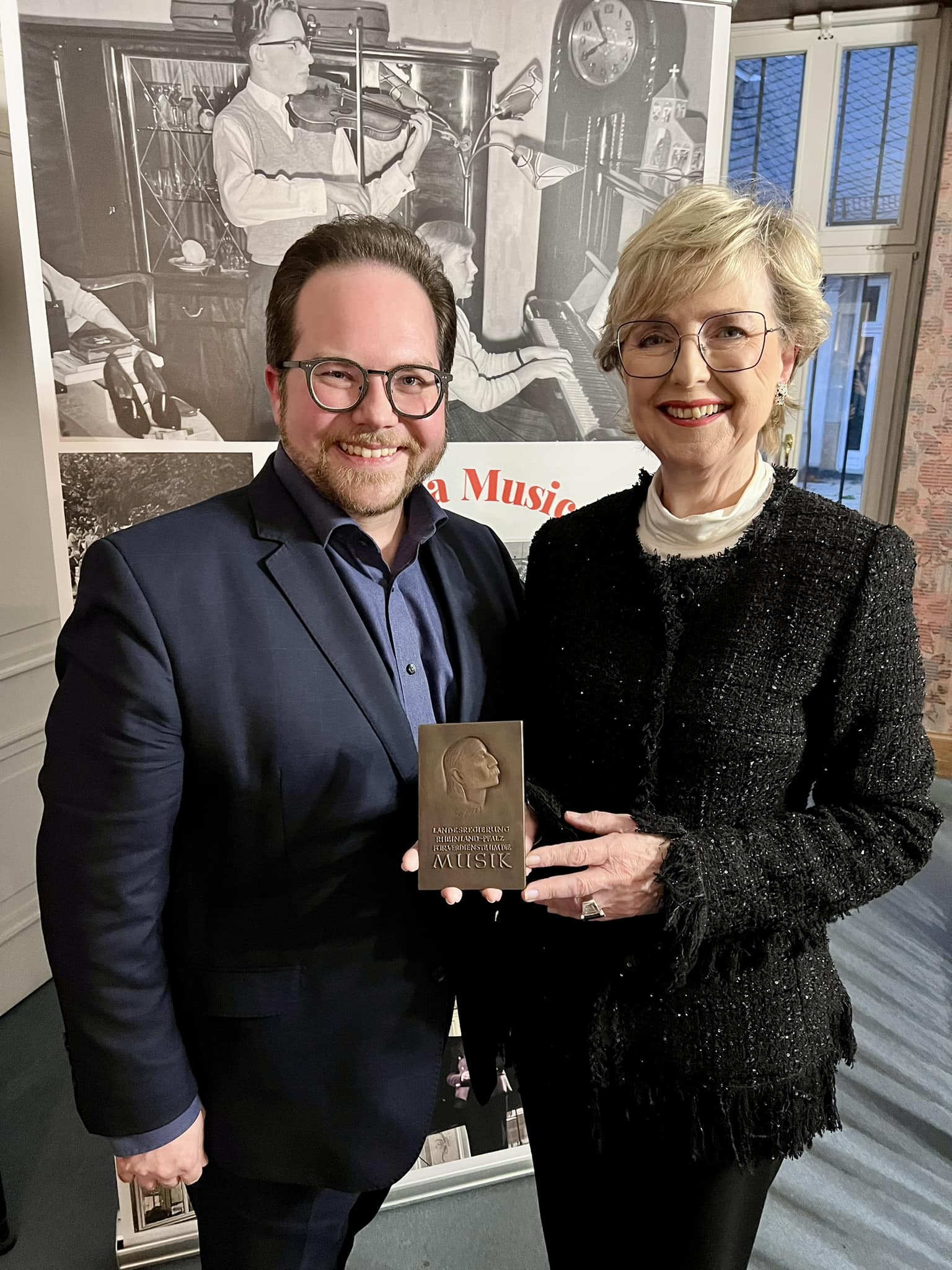 Zwar sind und waren Offizialakte nie mein Ding. An manchen kam man als Kulturjournalist von Berufs wegen nicht vorbei, nur zu wenigen zog es mich von Herzen hin. So im Falle des gestrigen: Barbara Harnischfeger erhielt aus der Hand von Katharina Binz ( RLP-Ministerin für Kultur und manches mehr) die Peter-Cornelius-Plakette des Landes Rheinland-Pfalz für ihr ehrenamtliches Engagement als Vorsitzende der Vereins Freunde der Villa Musica und überhaupt ihre langjährige Tätigkeit auf dem Gebiet der Förderung und Pflege von Musik und Musikleben in RLP auch als Leiterin des SWR-Studios Koblenz. Dazu an dieser Stelle nochmal herzlichen Glückwunsch. (Foto 1: Barbara mit ihrem Vorstandskollegen Pascal Badziong).