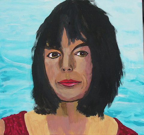Titel „Frau am Meer“, Acryl auf Leinwand, 50 x 50 cm. (c)Andreas Pecht 10.6.2025